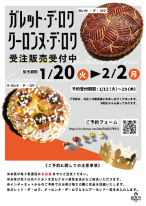 ガレット・デ・ロワ、クーロンヌ・デ・ロワの受注販売のお知らせ